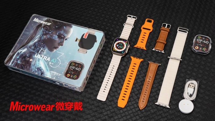 1x Microwear Ultra AI 3; 4× Pulseiras; 1x Case em silicone;